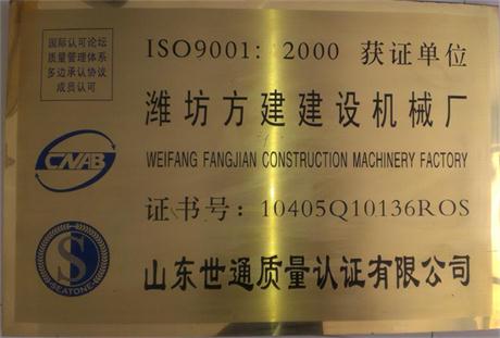 濰坊方建建機質(zhì)量認(rèn)證證書